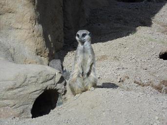 Keywords: meerkat animal mammal wildlife wild nature zoo desert furry cute small upright brown watchful african