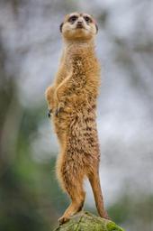 Keywords: meerkat portrait facing wildlife mammal africa small animal standing cute looking fur mongoose alert creature lookout watch upright guard rock