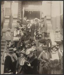 | Keywords: Meeting at Coffee House, New York. 160014v.jpg Meeting at Coffee House New York Front row - L-R Mrs Wm Colt N Y Mrs Wm Kent Cal Mrs John Rogers N Y Lucy Burns back of Mrs Rogers N Y Miss Hazel MacKaye Mass with Suffragist 1915 Mar 31 Summary Photograph of Congressional Union for Woman Suffrage Advisory Council leaving the Peg Woffington Coffee House in New York City Left to right front row Elizabeth Colt Elizabeth Kent Mrs John Rogers Mrs Olive Halladay Hasbrouck Hazel MacKaye far right holds a copy of The Suffragist ; second row Mrs George A Armes Lucy Burns center Mrs Oscar F Davisson Title transcribed from item Photograph published in The Suffragist 3 no 15 Apr 10 1915 cover 1 photograph print 7 x 8 5 in accession number Call Number Location National Woman's Party Records Group I Container I 160 Folder New York National Woman's Party Activity Source Collection Records of the National Woman's Party institution Library of Congress Manuscript Division http //hdl loc gov/loc mss/mnwp 160014 PD-old suffragettes Suffragettes wearing fur Muffs Ermine clothing Fox clothing Coffee houses Fur fashion in 1915 |