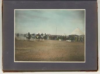 | Keywords: Meetings of British, Arab, and Bedouin officials in Amman, Jordan, April 1921 - File 22.tif en Photographs show meetings between Arab Bedouin and British officials around April 17-27 1921 at Amir Abdullah ibn Hussein's camp at Amman Jordan During these meetings British High Commissioner Herbert Samuel proclaimed Amir Abdullah as the ruler of Transjordan under British protection Among the persons depicted are Amir Abdullah John D Whiting possibly Sheik Sultan of the Belka Sultan ibn 'Ali id Diab ul 'Adwan Amir Shaker bin Zeid future Regent of Transjordan Bedouin chief Auda Abu Tayi Sheik Majid Pasha el Adwan Herbert Samuel British civil administrator Wyndham Deedes British diplomat Albert Abramson T E Lawrence Lawrence of Arabia and possibly Iraq civil administrator Gertrude Bell Also shown are horse racing an airplane landing at Abdullah's camp Circassian leaders Abudullah's bodyguard on camels and Herbert Samuel reading his proclamation of Abdullah as leader of Transjordan Reproduction Number LC-DIG-ppmsca-15304 digital files of original photos LC-DIG-ppmsca-15305 digital files of album pages Rights Advisory No known restrictions on publication Access Advisory For reference access please use the digital images in the online catalog to preserve the fragile original items Notes Photographs were created by the photographers of the American Colony Photo Department located in Jerusalem Founded in the late 1890s by Elijah Meyers the photo agency was headed during its heyday ca 1903-1933 by Lewis Larsson whose staff photographers included Erik Lind Lars Lind Furman Baldwin and G Eric Matson It transitioned into the Matson Photo Service around 1940 with photography by Matson Hanna Safieh Joseph H Giries and others John D Whiting contributed periodically to the work of both agencies The images in this album were probably taken by Lewis Larsson and/or Eric Matson For more information see http //hdl loc gov/loc pnp/pp matpc and http //www loc gov/rr/print/coll/629_whiting html Some caption information for these photographs based on information from matching negatives in the G Eric and Edith Matson Photograph Collection LC-M32-1942 LC-M32-1952 LC-M32-1951 LC-M32-1954 LC-M32-1956 M32-1957 and LC-M32-50280-x Album unpaginated album page numbers supplied by Library staff Pages 1-2 and verso of each page are blank One unattached photograph was found with the album and is stored with it Photograph is a portrait of a Jordanian man in traditional dress Blind stamp Hagop Berberian Amman Stamped on verso Copyright reserved By appointment to H M the King photographers Hagop Berberian Son More information about the events and people depicted in the album are available in the John D Whiting Supplementary Archive Box 1 LOT title devised by Library staff John D Whiting's diaries correspondence and other materials are located in the Library of Congress Manuscript Division Papers of John D Whiting Forms part of Visual materials from the papers of John D Whiting Library of Congress Transfer; Manuscript Division; 2006; DLC/PP-2006 051 29 Subjects Samuel Herbert Louis Samuel --Viscount --1870-1963 Lawrence T E -- Thomas Edward --1888-1935 Abdullah --King of Jordan --1882-1951 Deedes Wyndham Henry --Sir --1883-1956 Shākir ibn Zayd --Prince son of Zayd ibn Fawwāz Amir of Ṭāʾif --1885-1934 Bell Gertrude Lowthian --1868-1926 Jordan--History--1919-1946 American Colony Jerusalem --People--1920-1930 British--Jordan--Amman--1920-1930 Arabs--Jordan--Amman--1920-1930 Bedouins--Jordan--Amman--1920-1930 Circassians--Jordan--Amman--1920-1930 Tribal chiefs--Jordan--Amman--1920-1930 Meetings--Jordan--Amman--1920-1930 Camps--Jordan--Amman--1920-1930 Government officials--Jordan--Amman--1920-1930 Biplanes--Jordan--Amman--1920-1930 Proclamations--Jordan--Amman--1920-1930 April 17-27 1921 http //www loc gov/pictures/item/mpc2010001545/PP/resource/ Whiting John D John David 1882-1951 photographer Larsson Lewis photographer Matson G Eric Gästgifvar Eric 1888-1977 photographer other versions Wikimedia Levant - GLAM PD-Jordan 1921 Herbert Samuel and Amir Abdullah meetings |