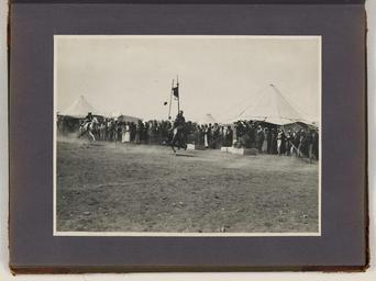 | Keywords: Meetings of British, Arab, and Bedouin officials in Amman, Jordan, April 1921 - File 23.tif en Photographs show meetings between Arab Bedouin and British officials around April 17-27 1921 at Amir Abdullah ibn Hussein's camp at Amman Jordan During these meetings British High Commissioner Herbert Samuel proclaimed Amir Abdullah as the ruler of Transjordan under British protection Among the persons depicted are Amir Abdullah John D Whiting possibly Sheik Sultan of the Belka Sultan ibn 'Ali id Diab ul 'Adwan Amir Shaker bin Zeid future Regent of Transjordan Bedouin chief Auda Abu Tayi Sheik Majid Pasha el Adwan Herbert Samuel British civil administrator Wyndham Deedes British diplomat Albert Abramson T E Lawrence Lawrence of Arabia and possibly Iraq civil administrator Gertrude Bell Also shown are horse racing an airplane landing at Abdullah's camp Circassian leaders Abudullah's bodyguard on camels and Herbert Samuel reading his proclamation of Abdullah as leader of Transjordan Reproduction Number LC-DIG-ppmsca-15304 digital files of original photos LC-DIG-ppmsca-15305 digital files of album pages Rights Advisory No known restrictions on publication Access Advisory For reference access please use the digital images in the online catalog to preserve the fragile original items Notes Photographs were created by the photographers of the American Colony Photo Department located in Jerusalem Founded in the late 1890s by Elijah Meyers the photo agency was headed during its heyday ca 1903-1933 by Lewis Larsson whose staff photographers included Erik Lind Lars Lind Furman Baldwin and G Eric Matson It transitioned into the Matson Photo Service around 1940 with photography by Matson Hanna Safieh Joseph H Giries and others John D Whiting contributed periodically to the work of both agencies The images in this album were probably taken by Lewis Larsson and/or Eric Matson For more information see http //hdl loc gov/loc pnp/pp matpc and http //www loc gov/rr/print/coll/629_whiting html Some caption information for these photographs based on information from matching negatives in the G Eric and Edith Matson Photograph Collection LC-M32-1942 LC-M32-1952 LC-M32-1951 LC-M32-1954 LC-M32-1956 M32-1957 and LC-M32-50280-x Album unpaginated album page numbers supplied by Library staff Pages 1-2 and verso of each page are blank One unattached photograph was found with the album and is stored with it Photograph is a portrait of a Jordanian man in traditional dress Blind stamp Hagop Berberian Amman Stamped on verso Copyright reserved By appointment to H M the King photographers Hagop Berberian Son More information about the events and people depicted in the album are available in the John D Whiting Supplementary Archive Box 1 LOT title devised by Library staff John D Whiting's diaries correspondence and other materials are located in the Library of Congress Manuscript Division Papers of John D Whiting Forms part of Visual materials from the papers of John D Whiting Library of Congress Transfer; Manuscript Division; 2006; DLC/PP-2006 051 29 Subjects Samuel Herbert Louis Samuel --Viscount --1870-1963 Lawrence T E -- Thomas Edward --1888-1935 Abdullah --King of Jordan --1882-1951 Deedes Wyndham Henry --Sir --1883-1956 Shākir ibn Zayd --Prince son of Zayd ibn Fawwāz Amir of Ṭāʾif --1885-1934 Bell Gertrude Lowthian --1868-1926 Jordan--History--1919-1946 American Colony Jerusalem --People--1920-1930 British--Jordan--Amman--1920-1930 Arabs--Jordan--Amman--1920-1930 Bedouins--Jordan--Amman--1920-1930 Circassians--Jordan--Amman--1920-1930 Tribal chiefs--Jordan--Amman--1920-1930 Meetings--Jordan--Amman--1920-1930 Camps--Jordan--Amman--1920-1930 Government officials--Jordan--Amman--1920-1930 Biplanes--Jordan--Amman--1920-1930 Proclamations--Jordan--Amman--1920-1930 April 17-27 1921 http //www loc gov/pictures/item/mpc2010001545/PP/resource/ Whiting John D John David 1882-1951 photographer Larsson Lewis photographer Matson G Eric Gästgifvar Eric 1888-1977 photographer other versions Wikimedia Levant - GLAM PD-Jordan 1921 Herbert Samuel and Amir Abdullah meetings |