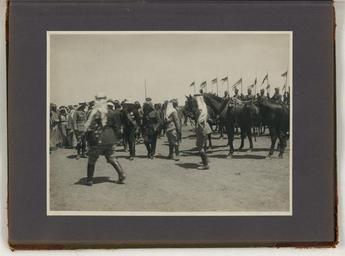 | Keywords: Meetings of British, Arab, and Bedouin officials in Amman, Jordan, April 1921 - File 26.tif en Photographs show meetings between Arab Bedouin and British officials around April 17-27 1921 at Amir Abdullah ibn Hussein's camp at Amman Jordan During these meetings British High Commissioner Herbert Samuel proclaimed Amir Abdullah as the ruler of Transjordan under British protection Among the persons depicted are Amir Abdullah John D Whiting possibly Sheik Sultan of the Belka Sultan ibn 'Ali id Diab ul 'Adwan Amir Shaker bin Zeid future Regent of Transjordan Bedouin chief Auda Abu Tayi Sheik Majid Pasha el Adwan Herbert Samuel British civil administrator Wyndham Deedes British diplomat Albert Abramson T E Lawrence Lawrence of Arabia and possibly Iraq civil administrator Gertrude Bell Also shown are horse racing an airplane landing at Abdullah's camp Circassian leaders Abudullah's bodyguard on camels and Herbert Samuel reading his proclamation of Abdullah as leader of Transjordan Reproduction Number LC-DIG-ppmsca-15304 digital files of original photos LC-DIG-ppmsca-15305 digital files of album pages Rights Advisory No known restrictions on publication Access Advisory For reference access please use the digital images in the online catalog to preserve the fragile original items Notes Photographs were created by the photographers of the American Colony Photo Department located in Jerusalem Founded in the late 1890s by Elijah Meyers the photo agency was headed during its heyday ca 1903-1933 by Lewis Larsson whose staff photographers included Erik Lind Lars Lind Furman Baldwin and G Eric Matson It transitioned into the Matson Photo Service around 1940 with photography by Matson Hanna Safieh Joseph H Giries and others John D Whiting contributed periodically to the work of both agencies The images in this album were probably taken by Lewis Larsson and/or Eric Matson For more information see http //hdl loc gov/loc pnp/pp matpc and http //www loc gov/rr/print/coll/629_whiting html Some caption information for these photographs based on information from matching negatives in the G Eric and Edith Matson Photograph Collection LC-M32-1942 LC-M32-1952 LC-M32-1951 LC-M32-1954 LC-M32-1956 M32-1957 and LC-M32-50280-x Album unpaginated album page numbers supplied by Library staff Pages 1-2 and verso of each page are blank One unattached photograph was found with the album and is stored with it Photograph is a portrait of a Jordanian man in traditional dress Blind stamp Hagop Berberian Amman Stamped on verso Copyright reserved By appointment to H M the King photographers Hagop Berberian Son More information about the events and people depicted in the album are available in the John D Whiting Supplementary Archive Box 1 LOT title devised by Library staff John D Whiting's diaries correspondence and other materials are located in the Library of Congress Manuscript Division Papers of John D Whiting Forms part of Visual materials from the papers of John D Whiting Library of Congress Transfer; Manuscript Division; 2006; DLC/PP-2006 051 29 Subjects Samuel Herbert Louis Samuel --Viscount --1870-1963 Lawrence T E -- Thomas Edward --1888-1935 Abdullah --King of Jordan --1882-1951 Deedes Wyndham Henry --Sir --1883-1956 Shākir ibn Zayd --Prince son of Zayd ibn Fawwāz Amir of Ṭāʾif --1885-1934 Bell Gertrude Lowthian --1868-1926 Jordan--History--1919-1946 American Colony Jerusalem --People--1920-1930 British--Jordan--Amman--1920-1930 Arabs--Jordan--Amman--1920-1930 Bedouins--Jordan--Amman--1920-1930 Circassians--Jordan--Amman--1920-1930 Tribal chiefs--Jordan--Amman--1920-1930 Meetings--Jordan--Amman--1920-1930 Camps--Jordan--Amman--1920-1930 Government officials--Jordan--Amman--1920-1930 Biplanes--Jordan--Amman--1920-1930 Proclamations--Jordan--Amman--1920-1930 April 17-27 1921 http //www loc gov/pictures/item/mpc2010001545/PP/resource/ Whiting John D John David 1882-1951 photographer Larsson Lewis photographer Matson G Eric Gästgifvar Eric 1888-1977 photographer other versions Wikimedia Levant - GLAM PD-Jordan 1921 Herbert Samuel and Amir Abdullah meetings |