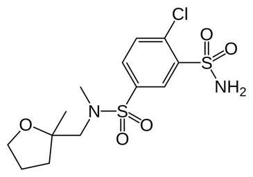 | Keywords: Mefruside skeletal.svg validSVG Skeletal formula of mefruside Orientation made to match Image Furosemide svg Created using http //www acdlabs com/download/chemsk html ACD/ChemSketch 10 0 http //www inkscape org Inkscape and http //www vim org vim Own Fvasconcellos 2008-06-28 Mefruside |
