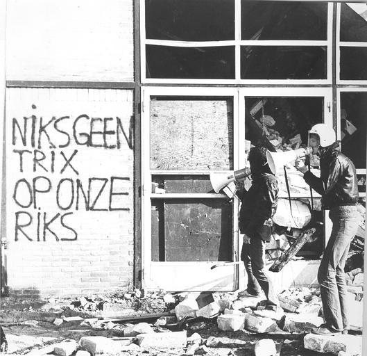 Keywords: Megafoons werkspoor.jpg en acoustic punk band The Megaphones first single cover photo alternative picture for their single Nix geen Trix op onze riks / No queen Beatrix on our coin nl akoestiese punk band de Megafoons own original text eigen foto 1 maurits groenenberg 01-02-1980 my own picture andere versie dan de single uit 1980 Op de ruïne van de voormalige werkspoor fabriek in Utrecht Cc-zero Musical groups from the Netherlands |