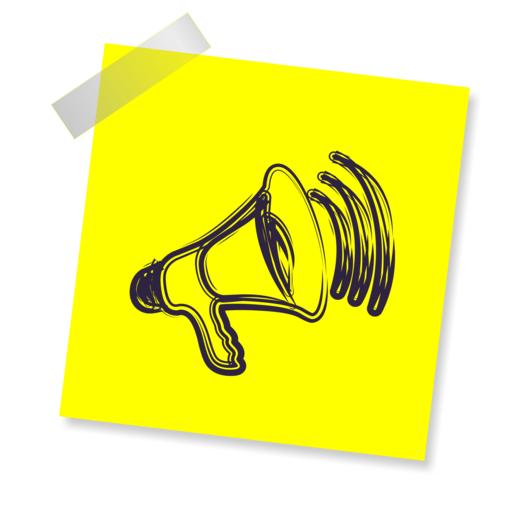 Keywords: megaphone voice speaker message announcement public sound advertisement speech loudspeaker icon yellow sticker note post note
