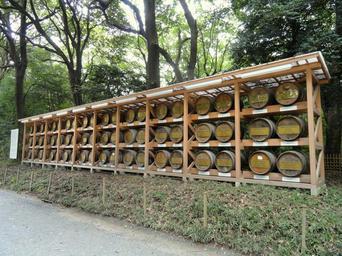 Keywords: Meiji Shrine - DSC04948.JPG Meiji Shrine Shinjuku Tokyo Japan I took this photograph 2011-09-10 20 50 28 Daderot Public domain Wine Barrel Offerings at Meiji Shrine