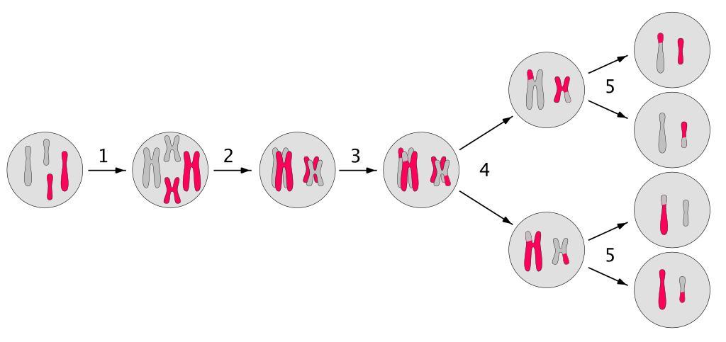 | Keywords: Meiosis main steps.svg en Schematic overview of the main steps involved in meiosis Completely re-drawn and expanded from File MajorEventsInMeiosis svg to show more clearly the pairing of homologous chromosomes and crossing-over <br> 1 Chromosome duplication; 2 pairing of homologous chromosomes; 3 crossing-over; 4 first division “ one of each duplicated chromosome per daughter; 5 second division “ one of each chromosome per daughter 2013-10-10 Ultimate source is http //www ncbi nlm nih gov/About/primer/genetics_cell html but much modified here Peter coxhead cc-zero Uploaded with UploadWizard Meiosis |