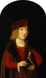 | Keywords: Meister der Magdalenenlegende 003-transparent.png Artwork Creator Master of the Legend of Mary Magdalene de Kaiser Karl V 1500-1558 als Siebenjähriger mit einem Jagdfalken Halbfigurenbild ca 1507 oil wood 49 x 35 5 cm Rahmenmaße 49 x 36 5 x 3 cm Institution KHM accession number object history credit line Beschriftung Am Hemdsaum die Inschrift FIS DE ROI SPANNER N ; Inschrift an der unteren Rahmenleiste Etatis septe anor quatour mes XXI dier <br/> Inv -Nr GG_4430<br/> Provenienz Ambraser Slg <br/> Abgebildete Person Kaiser Karl V Sohn des Philipp von Habsburg http //bilddatenbank khm at/viewArtefact id 2296 Meister der Magdalenenlegende 003 jpg transparent background Medium69 Medium69 PD-old-100 DEFAULTSORT 1507c; Charles V Paintings by Meister der Magdalenenlegende in the Kunsthistorisches Museum Portraits of young Charles V Holy Roman Emperor 1500s paintings in Austria 1507 portrait paintings Male 16th-century oil on panel paintings in Austria 16th-century oil portraits of boys at half length 16th-century portrait paintings in the Kunsthistorisches Museum 16th-century portrait paintings with birds Collar of the Order of the Golden Fleece in portrait paintings Fur fashion in 1507 Fur trimmings in art Pageboy haircut Portraits with falcons Portraits with semicircular top Red clothing in art male Red headwear in art |
