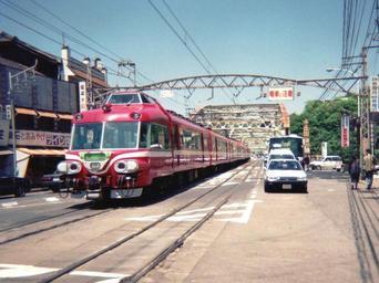 Keywords: Meitetsu 7000 InuyamaBridge.jpg en Nagoya Railroad EMU type 7000 Panorama Car 1990 in rail transport in Japan Inuyama Bridge Meitetsu 7000 series Former trains of Inuyama Line Street photography in Japan