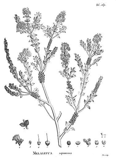 | Keywords: Melaleuca squarrosa.gif A botanical illustration depicting Melaleuca squarrosa Novae Hollandiae Plantarum Specimen 2 t 169 reproduced for some reason at http //www phylodiversity net/borneo/delta/Itemscan/melaleuc gif Borneo tree images 1806 Jacques Labillardiere unknown artist PD-old-100 Novae Hollandiae Plantarum Specimen Melaleuca squarrosa |