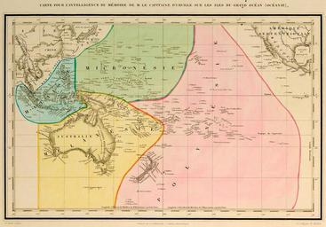 | Keywords: Melanesia Polynesia Mikronesia Malaisie.jpg en The presentation of the subdivisions proposed by Dumont d ™Urville published in the Bulletin de la SociĂ©tĂ© de GĂ©ographie included on the first page a map carving out the new regions of Malaysia Melanesia Micronesia Polynesia by means of a dotted line The same map showing differently coloured areas for better differentiation was published in 1833 in the account of the Voyage of the Astrolabe This is the map presented here Carte pour l ™intelligence du mĂ©moire de M le Capitaine d ™Urville sur les Ă®les du Grand OcĂ©an OcĂ©anie J Tastu Editeur D G dessinĂ© et gravĂ© par A Tardieu Voyage de l ™Astrolabe “ partie historique Map for understanding Captain d ™Urville ™s memoir on the islands of the Great Ocean Oceania J Tastu Publisher D G drawn and engraved by A Tardieu Voyage of the Astrolabe “ historical part included in the Voyage de La corvette l'Astrolabe executĂ© pendant les annĂ©es 1826-27-28-29 ¦ par M Jules Dumont d ™Urville Partie historique Paris J Tastu 1833 2014-03-21 15 14 47 http //www pacific-encounters fr/images/20gd jpg NLA pd-old-100 Uploaded with UploadWizard Old maps of Oceania |