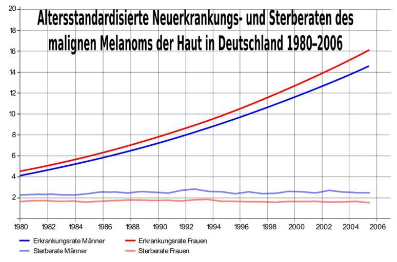 MAKE A MEME View Large Image Melanoma incidence moratality in Germany 01.svg Inzidenz und Mortalität des malignen Melanoms der Haut für Männer und Frauen in Deutschland von 1980 bis 2006 own Data taken from Robert-Koch-Institut Herausgeber http //www gekid de/Doc/...