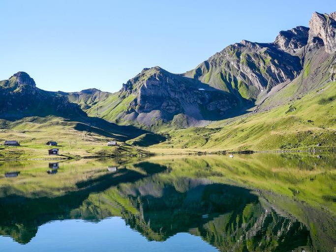 Keywords: melchseefrutt mountains mountain summit alpine lake bergsee berghaus mountain hut nature switzerland alpine