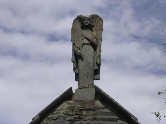 Keywords: Melhus kirke 006.JPG no Engel på toppen av inngangsportal Melhus kirke i Melhus kommune Sør-Trøndelag Own 2007-08-07 Finnrind Melhus kirke Images by Finn Rindahl