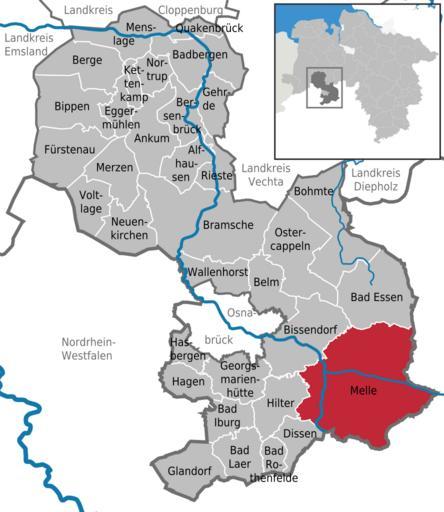 | Keywords: Melle in OS.svg  DeLocMaps Melle Landkreis Osnabrück District of Osnabrück Osnabrück district L'arrondissement d'Osnabrück Arrondissement d'Osnabrück Niedersachsen Lower Saxony Basse-Saxe TUBS/Translation own Adobe Illustrator based on File Lower Saxony location map svg NordNordWest http //www landkreis-osnabrueck de/pics/medien/1_1221811658/Zwei_Wege_Strategie pdf Landkreis Osnabrück Die 2-Wege-Strategie im Landkreis Osnabrück File Locator map OS in Lower Saxony svg TUBS 2009-06-20 TUBS TUBS GFDL cc-by-3 0 2 5 2 0 1 0 cc-by-sa-3 0 2 5 2 0 1 0 TUBS/Credits Locator maps of municipalities in Landkreis Osnabrück Melle Lower Saxony  |