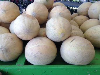 Keywords: melon cantaloupe fresh fruit pile market