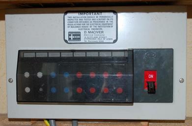 Keywords: Mem 1977 cu closed.jpg en A UK consumer unit fuse box for rewirable fuse holders installed c 1976 manufactured by MEM Own Anihl 2008-10-14 Safety equipment Rewirable fuses