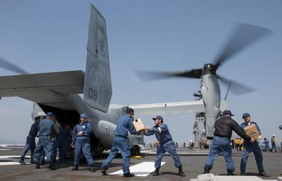 Keywords: Members of the JMSDF load supplies onto an MV-22B Osprey aircraft. (26268629430).jpg KUMAMOTO Japan April 19 2016 Members of the Japan Maritime Self-Defense Force load supplies onto an MV-22B Osprey aircraft from Marine Medium Tilitrotor Squadron VMM 265 attached to the 31st Marine Expeditionary Unit in support of the Government of Japan's relief efforts following earthquakes near Kumamoto The long-standing alliance between Japan and the U S allows U S military forces in Japan to provide rapid integrated support to the Japan Self-Defense Force and civil relief efforts U S Navy Photo by Mass Communication Specialist 3rd Class Gabriel B Kotico/Released 160419-N-AE545-342 Join the conversation http //www navy mil/viewGallery asp www navy mil/viewGallery asp http //www facebook com/USNavy www facebook com/USNavy http //www twitter com/USNavy www twitter com/USNavy http //navylive dodlive mil navylive dodlive mil http //pinterest com pinterest com https //plus google com plus google com https //www flickr com/photos/usnavy/26268629430/ Members of the JMSDF load supplies onto an MV-22B Osprey aircraft 2016-04-19 13 47 https //www flickr com/people/56594044 N06 Official U S Navy Page from United States of America MC3 Gabriel B Kotico/U S Navy Attribution License IPTC Caption-Abstract U S Navy Photo PD-USGov-Military-Navy Official U S Navy Imagery https //flickr com/photos/56594044 N06/26268629430 2016-04-20 15 30 56 cc-by-2 0 2016 Kumamoto earthquake relief efforts JS Hyƫga DDH-181 MV-22B Osprey on flight decks Photographs taken on 2016-04-19 United States Forces Japan 160419-N-AE545-342 Navy Files from the U S Navy Flickr stream