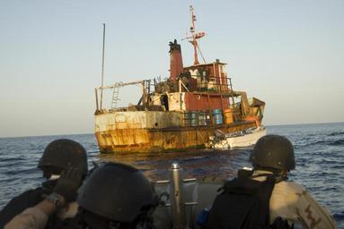 | Keywords: Members of a visit, board, search and seizure (VBSS) team approach a suspected pirate mothership.jpg Members of a visit board search and seizure VBSS team from the guided-missile cruiser USS Gettysburg CG 64 and U S Coast Guard Tactical Law Enforcement Team South Detachment 409 approach a suspected pirate mothership after responding to a merchant vessel distress signal while operating in the Combined Maritime Forces CMF area of responsibility as part of Combined Task Force CTF 151 CTF 151 is a multinational task force established to conduct counter-piracy operations under a mission-based mandate throughout the CMF area of responsibility to actively deter disrupt and suppress piracy in order to protect global maritime security and secure freedom of navigation for the benefit of all nations http //www navy mil/view_image asp id 71603 U S Navy photo by Mass Communication Specialist 1st Class Eric L Beauregard/Released 2009-05-13 <gallery>File US militaries seized suspected pirates jpg File Pirates capture-May 2009 jpg</gallery> PD-USGov-Military-Navy Combined Task Force 151 Piracy in Somalia Aboard USS Gettysburg CG-64 |