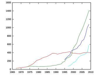 | Keywords: Membership in non-Christian religious organizations in Iceland.svg Membership in non-Christian religious organizations in Iceland as a function of time Red Bahá'í faith Green Paganism Dark blue Buddhism Light blue Islam Graph created in Gnuplot Data originates from Statistics Iceland as published online for the period of 1990 and later http //statice is/Statistics/Population/Religious-organizations and in the periodical Hagtíðindi for 1973-1989 Data for 1975 appears never to have been published The 1967 data point comes from a newspaper article http //timarit is/view_page_init jsp pageId 2390194 issId 184146 lang en The data is as follows <pre> Year Bahá'í Pagan Buddh Islam 1967 24 1973 59 58 1974 71 70 1976 112 77 1977 135 68 1978 174 72 1979 216 68 1980 227 67 1981 243 68 1982 269 69 1983 286 68 1984 298 71 1985 311 74 1986 333 77 1987 358 81 1988 384 89 1989 384 95 1990 378 98 1991 364 112 1992 379 119 1993 384 130 1994 399 172 1995 402 190 230 1996 407 263 278 1997 417 282 318 78 1998 425 301 349 89 1999 396 348 449 116 2000 386 512 466 164 2001 387 568 484 178 2002 380 628 497 229 2003 374 777 558 289 2004 373 872 592 321 2005 389 953 685 341 2006 400 1057 713 352 2007 399 1169 826 371 2008 412 1290 1003 402 2009 404 1415 1082 584 2010 398 1422 1090 591 2011 412 1722 1163 644 </pre> The pagan figures combine the figures for Ásatrúarfélagið since 1973 and Reykjavíkurgoðorð since 2006 The Buddhist figures combine the figures for the Buddhist Association of Iceland since 1995 Zen in Iceland since 1999 and SGI in Iceland since 2008 The Muslim figures combine the figures for the Muslim Association of Iceland since 1997 and the Muslim Cultural Centre in Iceland since 2009 For these purposes I've counted Jehovah's Witnesses the LDS Church and the Unification Church as Christian sects That's probably something of a stretch for the last one but their presence is small and including them would clutter the chart a bit They numbered 4 in 2006 and 2007 they numbered 17 in 2008 and 19 in 2009 Graph originally created and uploaded on May 8 2009 Graph created by uploader in Gnuplot Religion in Iceland |