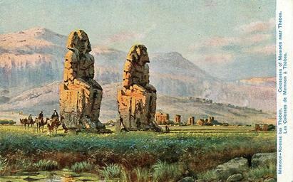 | Keywords: Memnon - postcard.jpg en Postcard undated ca 1914 Title Colossuses of Memnon near Thebes de Postkarte undatiert ca 1914 Title Memnon-Kolosse bei Theben private collection of Wolfgang Sauber Xenophon anonymous 2008-10-31 PD-1923 anonymous-EU Colossi of Memnon in art 1910s Postcards of Egypt 1914 postcards Egypt in the 1910s |