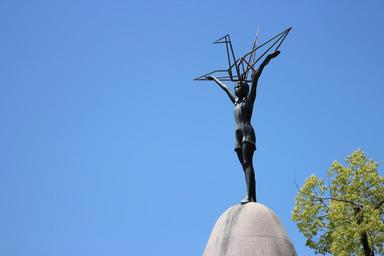 Keywords: memorial japan hiroshima monument little girl crane origami copper statue