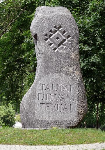 Keywords: Memorial stone of Ernests Brastiņš, founder of Dievturity, in Riga, Latvia v1.png lv wikipedia http //lv wikipedia org/wiki/Att C4 93ls Ernests_Brastins_2 JPG Ernest Brastins' 1892nd-1942nd monument in Riga Kronvald Park beside the congress hall at the city's canal Sculptor Uldis Sterģis in collaboration with the stonecutter Robertu Zvagūzis and medal artist Jāni Strupuli The monument is about 20 tons and four and a half meters high The inscription on the memorial stone says Tautai Folk Dievam God Tēvijai Fatherland on the other side there is a moulded medal with Brastins' portrait Photo A Buks 12 06 2009 Ernesta Brastiņa 1892 -1942 piemineklis Rīgā Kronvalda parkā līdzās Kongresu namam pie pilsētas kanāla Tēlnieks Uldis Sterģis sadarbībā ar akmeņkali Robertu Zvagūzi un medaļu mākslinieku Jāni Strupuli Piemineklis ir apmēram 20 t smags un četrarpus metru augsts Piemiņas akmeņa vienā pusē iekalti vārdi Tautai Dievam Tēvijai bet otrā pusē ir varā atliets Brastiņa portrets Foto A Buks 12 06 2009 2009 Made and uploaded by Anonīms Anonīms other versions Dievturity Neopaganism |