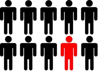 Keywords: men individual group community black red odd man out figures singled out maverick non-conformity stand out people teamwork ranks hierarchy leader unique rebel different