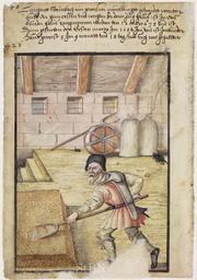 | Keywords: Mendel II 042 v.jpg Lienhartt Lienhard; Leonhard Stainbach Steinbach; Stainbach muelknecht; getraidt wentter; wechter Mühlenknecht; Getreidewender; Wächter Transkription und weitere Informationen siehe http //www nuernberger-hausbuecher de/75-Amb-2-317b-42-v/data Hausbuch der Mendelschen Zwölfbrüderstiftung Band 2 Nürnberg 1550 “1791 Stadtbibliothek Nürnberg Amb 317b 2° via http //www nuernberger-hausbuecher de/ 1584 anonymous PD-old-100 Hausbuch der Mendelschen Zwölfbrüderstiftung Band 2 Millers in art |