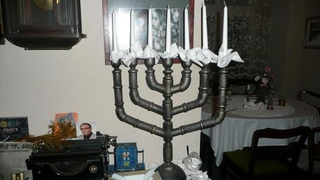 Keywords: Menorah 2.JPG en Menorah in the restaurant Anatewka in Lodz Poland own Brücke-Osteuropa 2010-06-23 Menorah