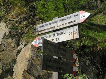Keywords: Meraner Höhenweg Naturns2.JPG de Wegweiser 2015-09-09 10 54 10 own Seichter-wm other versions 46 668477270001 10 992104270002 cc-zero Hiking and footpath signs in Italy Uploaded with UploadWizard Meraner Höhenweg