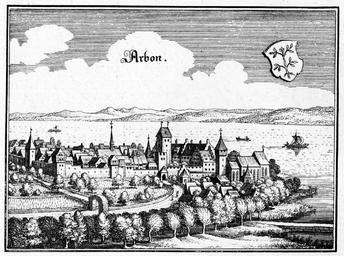 | Keywords: Merian Arbon 1642.jpg en View of the town of Arbon Switzerland 1643 de Ansicht der Stadt Arbon Schweiz 1643 Topographia Sueviae Creator Matthäus Merian 1643 PD-old-100 Merian Sueviae picture Engravings by Matthäus Merian Arbon Lake Constance in art Historical images of the canton of Thurgau 1642 in Switzerland |