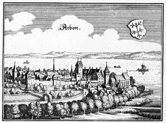 | Keywords: Merian Arbon 1642.jpg  en View of the town of Arbon Switzerland 1643 de Ansicht der Stadt Arbon Schweiz 1643 Topographia Sueviae Creator Matthäus Merian 1643 PD-old-100 Merian Sueviae picture Engravings by Matthäus Merian Arbon Lake Constance in art Historical images of the canton of Thurgau 1642 in Switzerland |