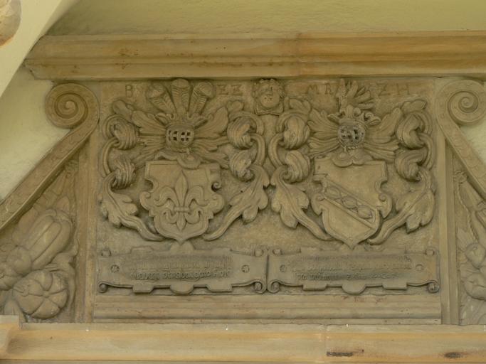 | Keywords: MerotinKostelZnaky.jpg cs Kostel svatého Martina Měrotín - renesanční reliéfní znak stavitele Bernarda ze Zástřizl a jeho manželky nad jižním vstupním portálem 1619 Own Martin Vavřík 2009-04-18 Church of Saint Martin Měrotín Coats of arms of Páni ze Zástřizl Reliefs of coats of arms in Olomouc Region |