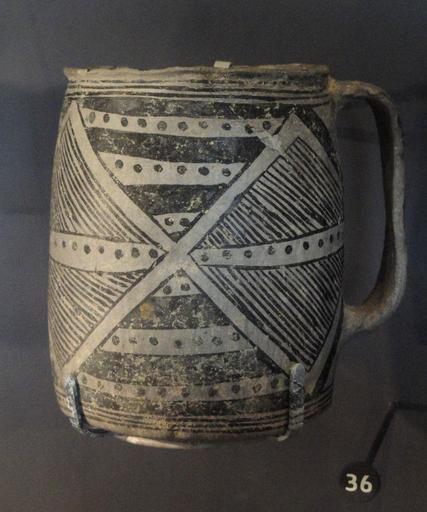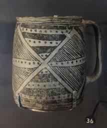 | Keywords: Mesa Verde black-on-white mug, San Juan Anasazi, Whiskers Ruin, Utah, 1200-1300 AD, ceramic, paint - Natural History Museum of Utah - DSC07407.JPG en Exhibit in the Natural History Museum of Utah Salt Lake City Utah USA This item is old enough so that it is in the public domain Photography was permitted in the museum without restriction 2013-03-17 15 21 15 own Daderot cc-zero Pre-Columbian North American artifacts in the Natural History Museum of Utah Uploaded with UploadWizard Mesa Verde pottery |