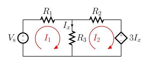 | Keywords: Mesh Analysis Example4 TeX.svg LaTeX Source Code <source lang latex > \documentclasstikz margin 15px standalone \usepackage color graphicx circuitikz \usepackageload-configurations version-1 siunitx \usetikzlibrary arrows \begin document \begin circuitikz american very thick \draw 0 4 to 8 4 to cV l_ \huge 3i_x 8 7 0 4 to V l \huge V_\textrm s 0 7 0 7 to R l \huge R_1 4 7 to R l \huge R_2 8 7 4 4 to R l_ \huge R_3 i < \huge i_x 4 7 2 5 5 node \huge \color red i_1 6 5 5 node \huge \color red i_2 ; \drawvery thick red <- > triangle 45 2 5 4 6 arc -60 240 1 ; \drawvery thick red <- > triangle 45 6 9 4 6 arc -60 240 1 ; ;\end circuitikz \end document </source> cob own GorillaWarfare Mesh analysis TikZ diagrams Images with LaTeX source code Cc-zero |