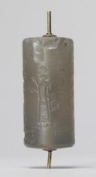 | Keywords: Mesopotamian - Cylinder Seal with Archer and Winged Lion - Walters 421195 - Side E.jpg A worshiper faces a deity standing on a griffin and aiming his bow and arrow at an upright winged lion-demon The winged disk of Ashur the patron god of Assyria appears above The three-line inscription gives the name of the owner Assyrians enjoyed the translucent and vibrant colors of semiprecious stones such as chalcedony between 900 700 BC Neo-Assyrian carved chalcedony gold cm 6 6 2 1 h x diam accession number 42 1195 34654 Mrs Henry Walters New York Sale Joseph Brummer New York 1941 Walters Art Museum 1942 by purchase Museum purchase 1942 Inscription place of origin Mesopotamia Walters Art Museum license Cylinder seals in the Walters Art Museum Art of Mesopotamia in the Walters Art Museum Media contributed by the Walters Art Museum needs category review |