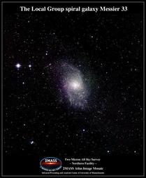 | Keywords: Messier 033 2MASS.jpg The Local Group spiral galaxy Messier 33 http //www ipac caltech edu/2mass/gallery/messiercat html 2MASS Atlas Image Gallery The Messier Catalog Two Micron All Sky Survey 2MASS a joint project of the University of Massachusetts and the Infrared Processing and Analysis Center/California Institute of Technology funded by the National Aeronautics and Space Administration and the National Science Foundation 2MASS Atlas image Triangulum Galaxy 2MASS Atlas Image Gallery The Messier Catalog BIG SIZE |