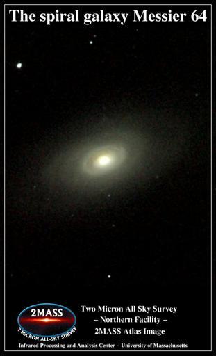 | Keywords: Messier 064 2MASS.jpg The spiral galaxy Messier 64 http //www ipac caltech edu/2mass/gallery/messiercat html 2MASS Atlas Image Gallery The Messier Catalog Two Micron All Sky Survey 2MASS a joint project of the University of Massachusetts and the Infrared Processing and Analysis Center/California Institute of Technology funded by the National Aeronautics and Space Administration and the National Science Foundation 2MASS Atlas image Black Eye Galaxy 2MASS Atlas Image Gallery The Messier Catalog BIG SIZE |