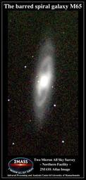 | Keywords: Messier 065 2MASS.jpg The barred spiral galaxy Messier 65 http //www ipac caltech edu/2mass/gallery/messiercat html 2MASS Atlas Image Gallery The Messier Catalog Two Micron All Sky Survey 2MASS a joint project of the University of Massachusetts and the Infrared Processing and Analysis Center/California Institute of Technology funded by the National Aeronautics and Space Administration and the National Science Foundation 2MASS Atlas image Messier 65 2MASS Atlas Image Gallery The Messier Catalog BIG SIZE |