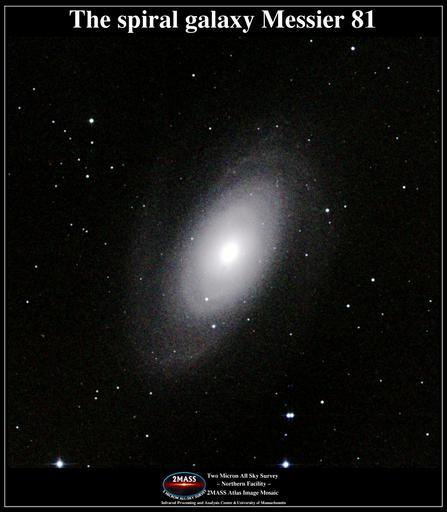 | Keywords: Messier 081 2MASS.jpg The spiral galaxy Messier 81 http //www ipac caltech edu/2mass/gallery/messiercat html 2MASS Atlas Image Gallery The Messier Catalog Two Micron All Sky Survey 2MASS a joint project of the University of Massachusetts and the Infrared Processing and Analysis Center/California Institute of Technology funded by the National Aeronautics and Space Administration and the National Science Foundation 2MASS Atlas image Messier 81 2MASS Atlas Image Gallery The Messier Catalog BIG SIZE |