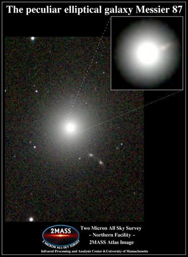 | Keywords: Messier 087 2MASS.jpg The peculiar elliptical galaxy Messier 87 http //www ipac caltech edu/2mass/gallery/messiercat html 2MASS Atlas Image Gallery The Messier Catalog Two Micron All Sky Survey 2MASS a joint project of the University of Massachusetts and the Infrared Processing and Analysis Center/California Institute of Technology funded by the National Aeronautics and Space Administration and the National Science Foundation 2MASS Atlas image Messier 87 2MASS Atlas Image Gallery The Messier Catalog BIG SIZE |