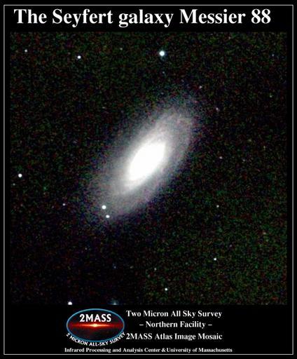 | Keywords: Messier 088 2MASS.jpg The Syfert galaxy Messier 88 http //www ipac caltech edu/2mass/gallery/messiercat html 2MASS Atlas Image Gallery The Messier Catalog Two Micron All Sky Survey 2MASS a joint project of the University of Massachusetts and the Infrared Processing and Analysis Center/California Institute of Technology funded by the National Aeronautics and Space Administration and the National Science Foundation 2MASS Atlas image Messier 88 2MASS Atlas Image Gallery The Messier Catalog BIG SIZE |