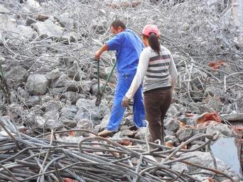 | Keywords: Metal rebar reclamation for recycling at building demolition site - 03.jpg en Workers extracting rebar and other metal from concrete rubble at building demolition site Haikou City Hainan Province China 2012-04-27 own Anna Frodesiak cc-zero Uploaded with UploadWizard Rebar Files by User Anna Frodesiak Rubble |