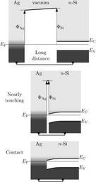 | Keywords: Metal semiconductor junction Schottky approximation.svg en Band diagram of Ag to Si wikipedia Metal-semiconductor junction in the Schottky approximation vacuum alignment picture 2013-06-17 00 00 14 own Nanite Source code Made using Ipe Source code below also placed into public domain <source lang xml > < xml version 1 0 > < DOCTYPE ipe SYSTEM ipe dtd > <ipe version 70005 creator Ipe 7 1 2 > <info created D 20130526223907 modified D 20130616235749 /> <ipestyle name cust > <symbol name arrow/fnormal spx > <path fill black > 0 0 m -1 0 333 l -1 -0 333 l h </path> </symbol> <pen name heavier value 0 8 /> <pen name fat value 1 2 /> <pen name ultrafat value 2 /> <symbolsize name large value 5 /> <symbolsize name small value 2 /> <symbolsize name tiny value 1 1 /> <arrowsize name large value 10 /> <arrowsize name small value 5 /> <arrowsize name tiny value 3 /> <color name darkgray value 0 4 /> <color name lightgray value 0 827 /> <dashstyle name dashed value 4 0 /> <dashstyle name dotted value 1 1 0 /> <dashstyle name dash dotted value 4 2 1 2 0 /> <dashstyle name dash dot dotted value 4 2 1 2 1 2 0 /> <textsize name large value \large /> <textsize name small value \small /> <textsize name tiny value \tiny /> <textsize name Large value \Large /> <textsize name LARGE value \LARGE /> <textsize name huge value \huge /> <textsize name Huge value \Huge /> <textsize name footnote value \footnotesize /> <textstyle name center begin \begin center end \end center /> <textstyle name itemize begin \begin itemize end \end itemize /> <textstyle name item begin \begin itemize \item end \end itemize /> <gridsize name 4 pts value 4 /> <gridsize name 8 pts ~3 mm value 8 /> <gridsize name 16 pts ~6 mm value 16 /> <gridsize name 32 pts ~12 mm value 32 /> <gridsize name 10 pts ~3 5 mm value 10 /> <gridsize name 20 pts ~7 mm value 20 /> <gridsize name 14 pts ~5 mm value 14 /> <gridsize name 28 pts ~10 mm value 28 /> <gridsize name 56 pts ~20 mm value 56 /> <gridsize name 2 pts value 2 /> <anglesize name 90 deg value 90 /> <anglesize name 60 deg value 60 /> <anglesize name 45 deg value 45 /> <anglesize name 30 deg value 30 /> <anglesize name 22 5 deg value 22 5 /> <gradient name fermi1 type axial coords 0 382 0 402 extend yes > <stop offset 0 color 0 25 /> <stop offset 1 color 0 9 /> </gradient> <gradient name fermi2 type axial coords 0 242 0 262 extend yes > <stop offset 0 color 0 25 /> <stop offset 1 color 0 9 /> </gradient> <gradient name fermi3 type axial coords 0 150 0 170 extend yes > <stop offset 0 color 0 25 /> <stop offset 1 color 0 9 /> </gradient> <tiling name falling angle -60 step 4 width 1 /> <tiling name rising angle 30 step 4 width 1 /> </ipestyle> <page> <layer name alpha /> <view layers alpha active alpha /> <path layer alpha fill darkgray gradient fermi3 > 108 124 m 172 124 l 172 148 l 140 148 l 124 148 108 144 s </path> <path fill lightgray gradient fermi3 > 108 200 m 108 124 l 76 124 l 76 200 l h </path> <path fill lightgray gradient fermi2 > 116 340 m 112 320 l 108 320 l 104 340 l h </path> <path fill lightgray gradient fermi2 > 108 340 m 108 216 l 76 216 l 76 340 l h </path> <path fill lightgray gradient fermi1 > 64 480 m 64 356 l 32 356 l 32 480 l h </path> <path fill darkgray gradient fermi2 > 112 216 m 176 216 l 176 240 l 144 240 l 128 240 112 236 s </path> <path fill lightgray gradient fermi2 > 112 340 m 176 340 l 176 258 l 144 258 l 128 258 112 254 s </path> <path fill lightgray gradient fermi1 > 132 480 m 128 464 l 64 460 l 60 480 l h </path> <path fill lightgray gradient fermi1 > 192 480 m 192 398 l 128 398 l 128 480 l h </path> <path fill darkgray gradient fermi1 > 192 380 m 192 356 l 128 356 l 128 380 l h </path> <text matrix 1 0 0 1 -132 232 transformations translations pos 160 160 stroke black type label width 12 993 height 6 812 depth 1 49 halign right valign center > E_ \rm F </text> <path matrix 1 0 0 1 -48 264 stroke black dash dotted pen heavier > 76 128 m 240 128 l </path> <path matrix 1 0 0 1 -64 260 stroke black dash dotted pen heavier > 120 200 m 136 200 l </path> <text matrix 1 0 0 1 -40 424 transformations translations pos 88 48 stroke black type label width 12 453 height 6 815 depth 1 93 halign center valign baseline >Ag</text> <path matrix 1 0 0 1 -48 264 stroke black arrow fnormal/normal > 112 128 m 112 196 l </path> <text matrix 1 0 0 1 -48 264 transformations translations pos 112 160 stroke black type label width 17 653 height 6 808 depth 2 85 halign right valign baseline > \Phi_ \rm Ag </text> <path matrix 1 0 0 1 -96 264 stroke black arrow fnormal/normal > 224 128 m 224 200 l </path> <path matrix 1 0 0 1 -96 256 stroke black dash dotted pen heavier > 216 208 m 232 208 l </path> <path matrix 1 0 0 1 -48 264 stroke black pen fat > 112 196 m 176 200 l </path> <path matrix 1 0 0 1 -96 268 stroke black pen fat > 288 112 m 224 112 l </path> <path matrix 1 0 0 1 -96 254 stroke black pen fat > 224 144 m 288 144 l </path> <text matrix 1 0 0 1 32 240 transformations translations pos 160 160 stroke black type label width 13 54 height 6 812 depth 1 49 valign center > E_ \rm C </text> <text matrix 1 0 0 1 32 220 transformations translations pos 160 160 stroke black type label width 13 84 height 6 812 depth 1 49 valign center > E_ \rm V </text> <text matrix 1 0 0 1 72 424 transformations translations pos 88 48 stroke black type label width 17 603 height 6 808 depth 0 halign center valign baseline > n -Si</text> <text matrix 1 0 0 1 16 264 transformations translations pos 112 160 stroke black type label width 14 349 height 6 812 depth 1 49 valign baseline > \Phi_ \rm Si </text> <text matrix 1 0 0 1 -72 256 transformations translations pos 168 216 stroke black type label width 33 486 height 4 289 depth 0 halign center valign baseline >vacuum</text> <path matrix 1 0 0 1 -48 264 stroke black pen heavier > 96 92 m 96 88 l 208 88 l 208 92 l </path> <path matrix 0 5 0 0 0 5 32 316 fill black > 4 0 0 4 256 80 e </path> <path matrix 0 5 0 0 0 5 -80 316 fill black > 4 0 0 4 2