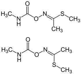 Keywords: Methomyl Structural Formulae .V.1.svg en Methomyl_Structural_Formulae de Methomyl_Strukturformeln own Jü 2010-07-30 E- and Z-isomers cis trans Carbamate insecticides