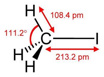 | Keywords: Methyl-iodide-CRC-MW-IR-dimensions-2D.png Structural formula of the methyl iodide iodomethane molecule MeI CH<sub>3</sub>I Structural information determined by microwave and infrared spectroscopy from http //www hbcpnetbase com/ CRC Handbook 88<sup>th</sup> edition Own 2009-03-15 Ben Mills Benjah-bmm27 Images by Ben Mills Iodomethane |