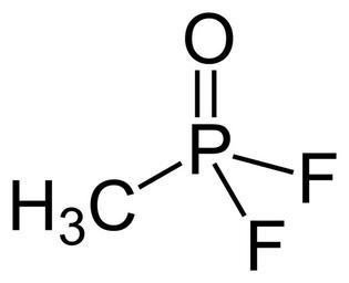 | Keywords: Methylphosphonyl-difluoride-2D.png Skeletal formula of methylphosphonyl difluoride H<sub>3</sub>CPOF<sub>2</sub> Structure drawn in http //www cambridgesoft com/software/ChemBioDraw/ ChemBioDraw Ultra 12 0 Own 2011-02-11 Ben Mills Benjah-bmm27 Images by Ben Mills Methylphosphonyl difluoride |
