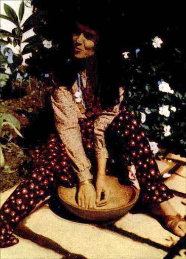 | Keywords: Metouali.jpg Metouali Shia Woman of the B'kaa Valley Printed calico makes the gay everyday costume of the Metouali peasant woman who works in the fields as well as tends her home The long fitted pantaloons with their wide ruffle flaring out over the ankle are the most distinguishing feature of the costume The dress itself is of the most simple long-sleeved style It is practical for the working woman since it reaches only slightly below the knees It can be furthered shortened by tucking it up into the ruffled apron she wears The apron and pantaloons usually contrast with the dress The Metouali woman's headdress is a black veil tied around the head with a folded scarf She usually goes barefoot http //almashriq hiof no/general/600 technology/640/646/costumes_of_the_Levant/druze html Published in Lebanon 1955 Margaret Clark Keatinge KHAYAT'S COLLEGE BOOK COOPERATIVE BEIRUT LEBANON PD-Lebanon Shi'a Muslims from Lebanon |