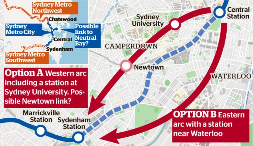 Keywords: metro planning discussions city of sydney cityofsydney chatswood sydenham transport for nsw transportfornsw new south wales newsouthwales sydney metro sydneymetro The NSW Government has opened discussion on possible station locations for the planned metro line through the heart of Sydney. Linking Chatwood to the north of the city (where Metro Northwest will terminate when opened in late 2018 or early 2019) with Sydenham in the South contenders are already touting their preferences for stations at Waterloo or Sydney University, Newtown or Enmore. Others to the north of the harbour are debating the rival merits of using existing facilities at St Leonards or building a new underground station at Crows Nest. A new station at the Artarmon Industrial Estate is also in the cards. The more ambitious are already talking about extensions to Neurtal Bay, Cremorne, Mosman and The Spit. The path trough the city seems set, with new stations being planned for Barangaroo, Martin Place, Pitt Street and Central. The planning documents show Barangaroo as a 'possible' location, but planning experts say a station there is a certainty. How the Sydney Morning Herald is reporting the situation: www.smh.com.au/nsw/sydney-trains-new-line-sparks-hopes-fo... Graphic: The Sydney Morning Herald - 21 June 2015. The NSW Government has opened discussion on possible station locations for the planned metro line through the heart of Sydney. Linking Chatwood to the north of the city (where Metro Northwest will terminate when opened in late 2018 or early 2019) with Sydenham in the South contenders are already touting their preferences for stations at Waterloo or Sydney University, Newtown or Enmore. Others to the north of the harbour are debating the rival merits of using existing facilities at St Leonards or building a new underground station at Crows Nest. A new station at the Artarmon Industrial Estate is also in the cards. The more ambitious are already talking about extensions to Neurtal Bay, Cremorne, Mosman and The Spit. The path trough the city seems set, with new stations being planned for Barangaroo, Martin Place, Pitt Street and Central. The planning documents show Barangaroo as a 'possible' location, but planning experts say a station there is a certainty. How the Sydney Morning Herald is reporting the situation: www.smh.com.au/nsw/sydney-trains-new-line-sparks-hopes-fo... Graphic: The Sydney Morning Herald - 21 June 2015. |